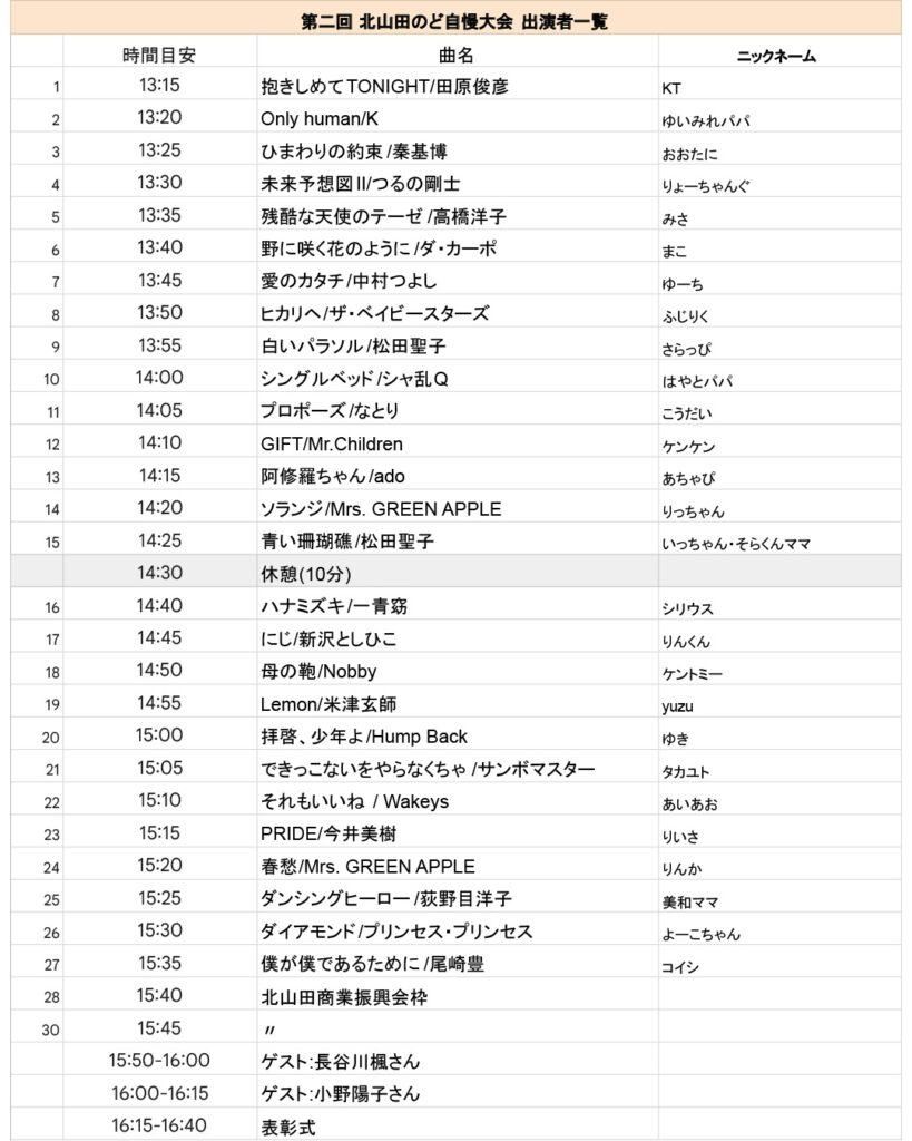 第2回のど自慢大会開催!11月16日(日)13:00-16:50