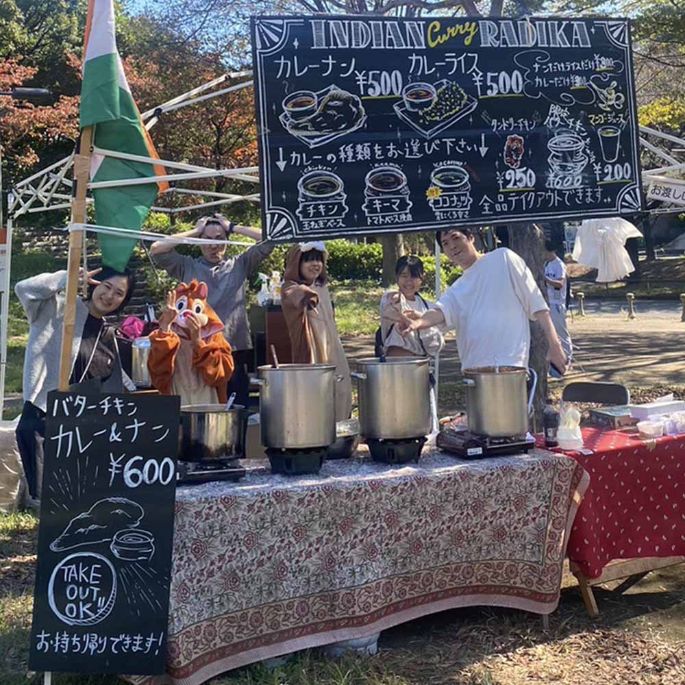 | 本格インド料理ラディカ | インドカレー、ナン、サフランライス各500円と600円、タンドリーチキン250円、ガーリックシュリンプ600円、揚げたこ焼き450円、マトンフーシュル400円、チーズフーシュル400円、マトンつくね400円、マトン串400円、缶ビール550円、ハイボール缶400円、ラッシー、マンゴーラッシー200円 |