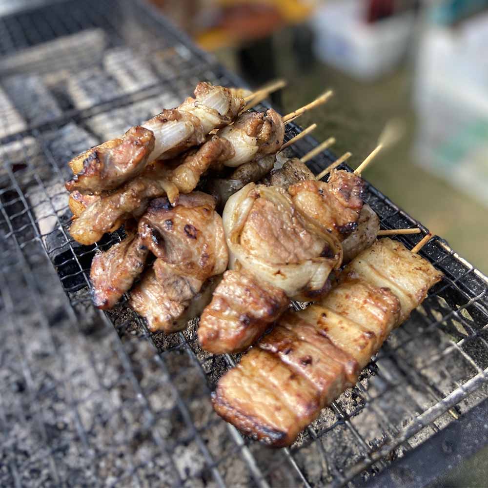 | 熊野農園 | 焼き鳥150円、焼きそば400円、フランク400円、焼き芋400円、さつまいもスティック400円、もち400円 |